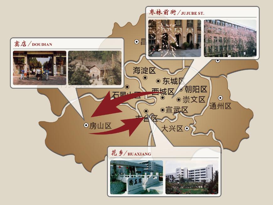 北京财贸学院校址变迁示意图