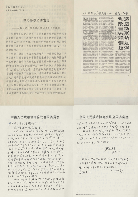 在全国政协会议上的发言及《人民政协报》刊发的文章