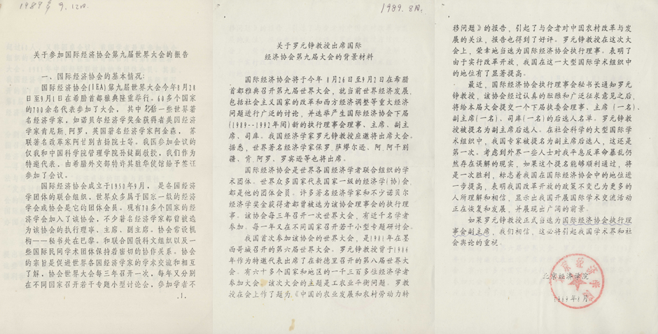 参加国际经济协会第九届世界大会的资料