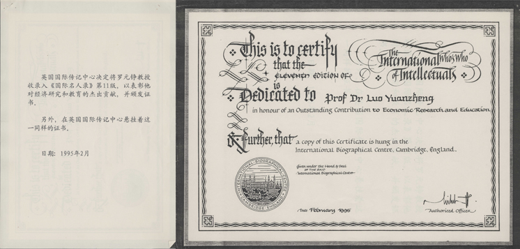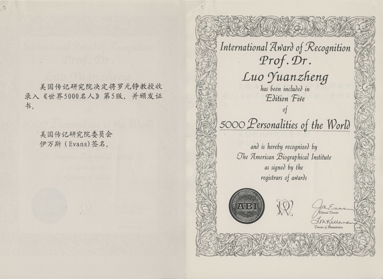 《国际名人录》收录证书