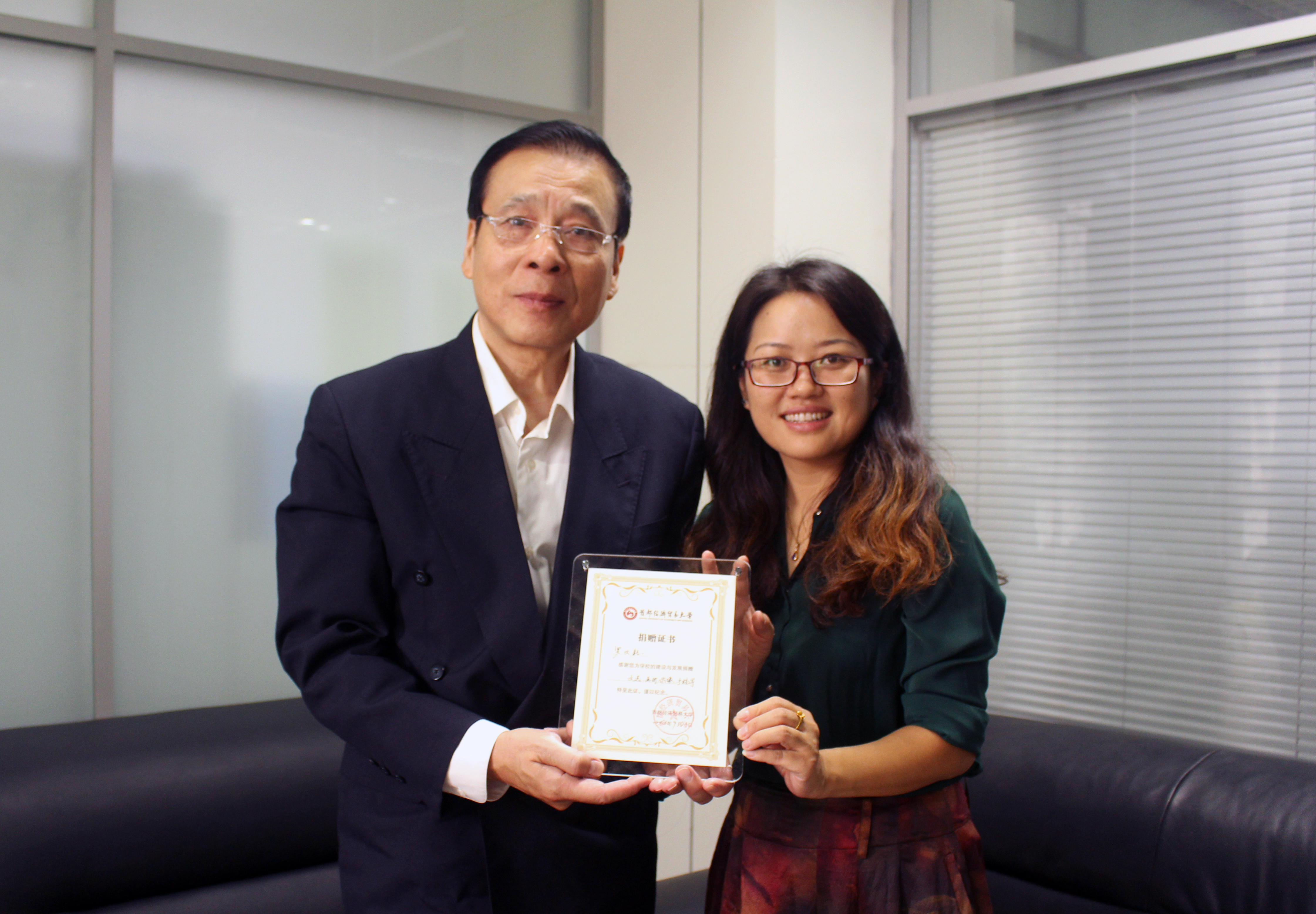 档案馆馆长徐彦红向罗又新颁发捐赠证书